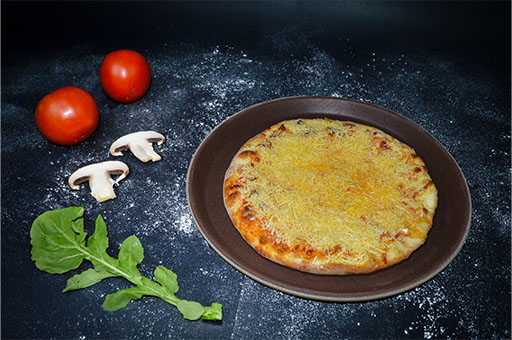 Masa de la casa, bañada en nuestra napolitana, queso azul, queso brie, queso parmesano y queso de la casa.