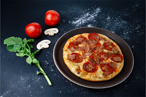 Masa de la casa, bañada en nuestra napolitana, tocineta y pepperoni y queso de la casa.